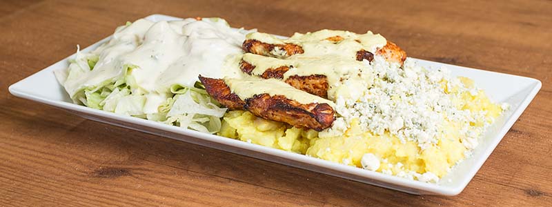 Kanan rintafile, aurajuustoperunat, Salaatti, Curry-majoneesi ja Talon majoneesi